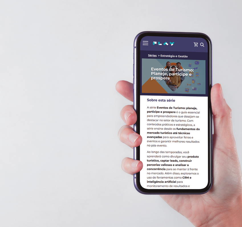 Considerada um guia essencial para empreendedores que desejam se destacar no setor de turismo, a série apresenta fundamentos do mercado do turismo; estratégias eficazes para divulgação e captação de leads; técnicas e planejamento para participação em eventos e feiras; boas práticas para otimização de resultados; e técnicas para os negócios se diferenciarem da concorrência. Ao longo da capacitação, o empreendedor aprenderá como divulgar seu produto e serviço, captar novos clientes, construir parcerias, além de analisar o mercado e a concorrência.