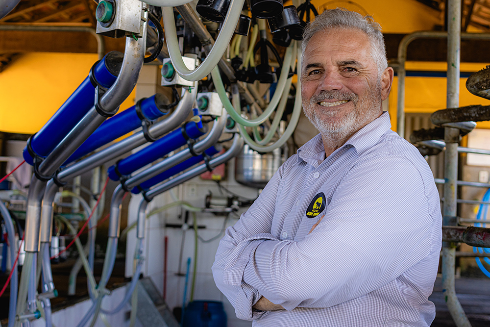 No Sul do estado, um dos fornecedores de leite da Danone tem se destacado pelas práticas sustentáveis avançadas que adota. Elcio Mendes Vilanova e Silva conta que, desde que se tornou proprietário da Fazenda São Francisco, em Carmo de Minas, a redução das emissões de carbono esteve entre seus objetivos. Utilização de painéis solares, reciclagem dos dejetos agrícolas, compost barn – espaço coberto e com cama de material orgânico, como serragem ou feno, para descanso das vacas – e aplicação de adubo orgânico nos plantios de milho são exemplos das práticas adotadas. Elcio diz que o Educampo o ajuda na atualização de dados econômico-financeiros e zootécnicos, em ações de melhoria e targets dos KPIs e treinamento de funcionários. Ele também costuma utilizar dados de benchmark como referência. “Temos ações bem-definidas para entrega até o fim de 2026 e já melhoramos nossa classificação ESG, CCS, sólidos, escala de produção e custos. Tudo com o apoio do Educampo. O resultado é que, de 2022 para 2024, as emissões de carbono caíram 28%.”